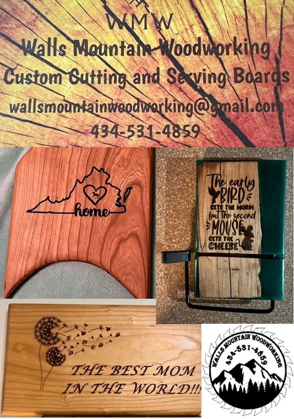 Walls Mountain Wood working makes beautiful custom cutting and serving boards.
